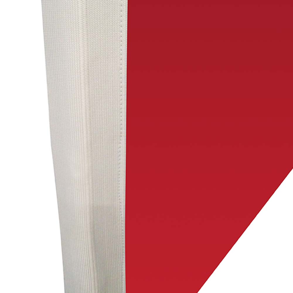 Die Fahne besteht aus 110 g/m² Fahnenstoff und einer Sperrschicht bei der das Besatzband als Gummiband in schwarz, weiß oder als bedruckter Stoffsaum erhältlich ist. Die Fahne ist 4/4-farbig, beidseitig bedruckbar und kann individuell bedruckt werden.